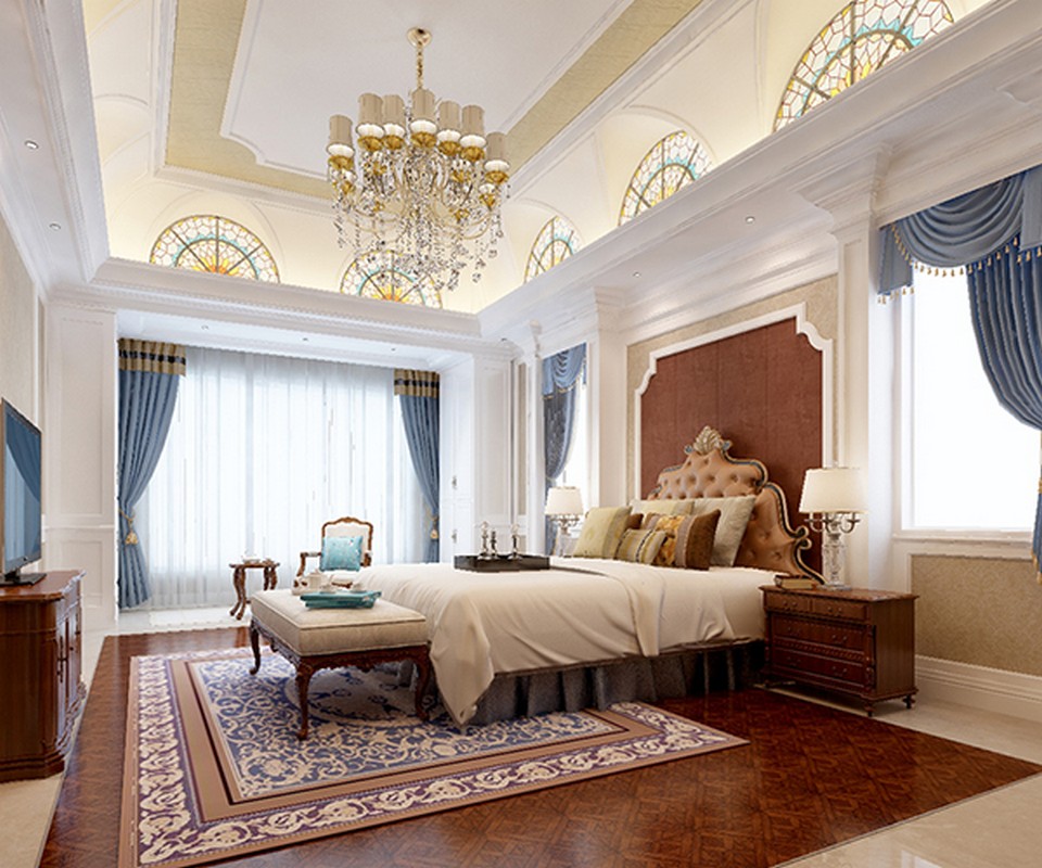 Với đặc trưng phần trần vòm hình tròn, màu sắc vàng sáng kết hợp với từng món đồ nội thất, hoa văn cổ điển, thiết kế này đậm màu tân cổ điển, thích hợp với những không gian rộng, sang trọng và đẳng cấp